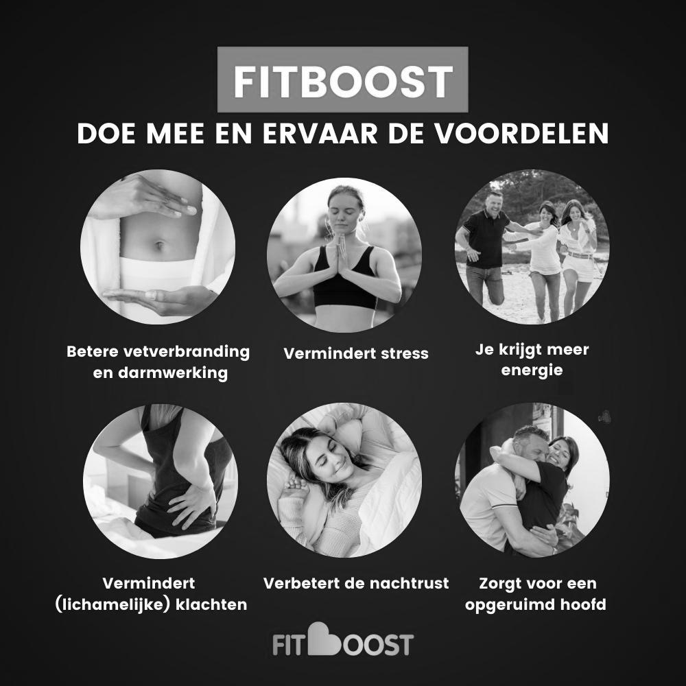 Januari is de tijd om weer volle kracht vooruit te gaan na alle feestdagen in december! Met de FITBOOST krijg je dé kickstart om je energie, en fitheid weer op te bouwen. Doe jij mee? Op woensdag 14 januari om 17.00 uur geeft Sanne meer uitleg over de FITBOOST. Wil je aansluiten bij deze kick-off. Geef het dan door aan Sanne. FITBOOST is een programma waarin de nadruk ligt op het rust geven van je lichaam, waaronder je darmen, lever en andere organen. Door deze rust verlopen onder andere de stofwisseling en energielevering beter, waardoor je je fitter voelt, ook mentaal. FITBOOST duurt in totaal vier weken. Je begint met een voorbereidende week, gevolgd door twee weken waarin je slechts voeding neemt die door de darmen makkelijk te verteren is en als laatste een afbouwweek waarin je tips krijgt hoe je je levensstijl voor altijd gezond kunt houden. Tijdens de twee middelste weken eet je nogmaals makkelijk te verteren voeding. Hierdoor hebben de darmen tijd over om opgeslagen afvalstoffen te verwijderen uit het lichaam. Tevens hebben de darmen alle tijd om alle vitamines en mineralen uit de producten die je eet en drinkt, op te nemen in je lichaam. FITBOOST is eenvoudig en de maaltijden zijn lekker. Je bouwt in deze weken geen tekorten op. Je merkt juist dat je je fitter gaat voelen, omdat je darmen alle voedingsstoffen steeds beter opnemen. Tevens leer je om dagelijks momenten van ontspanning in te bouwen en krijg je adviezen hoe je je nachtrust kunt verbeteren. Alles met één doel: je lichaam en geest rust te geven met meer energie als gevolg.